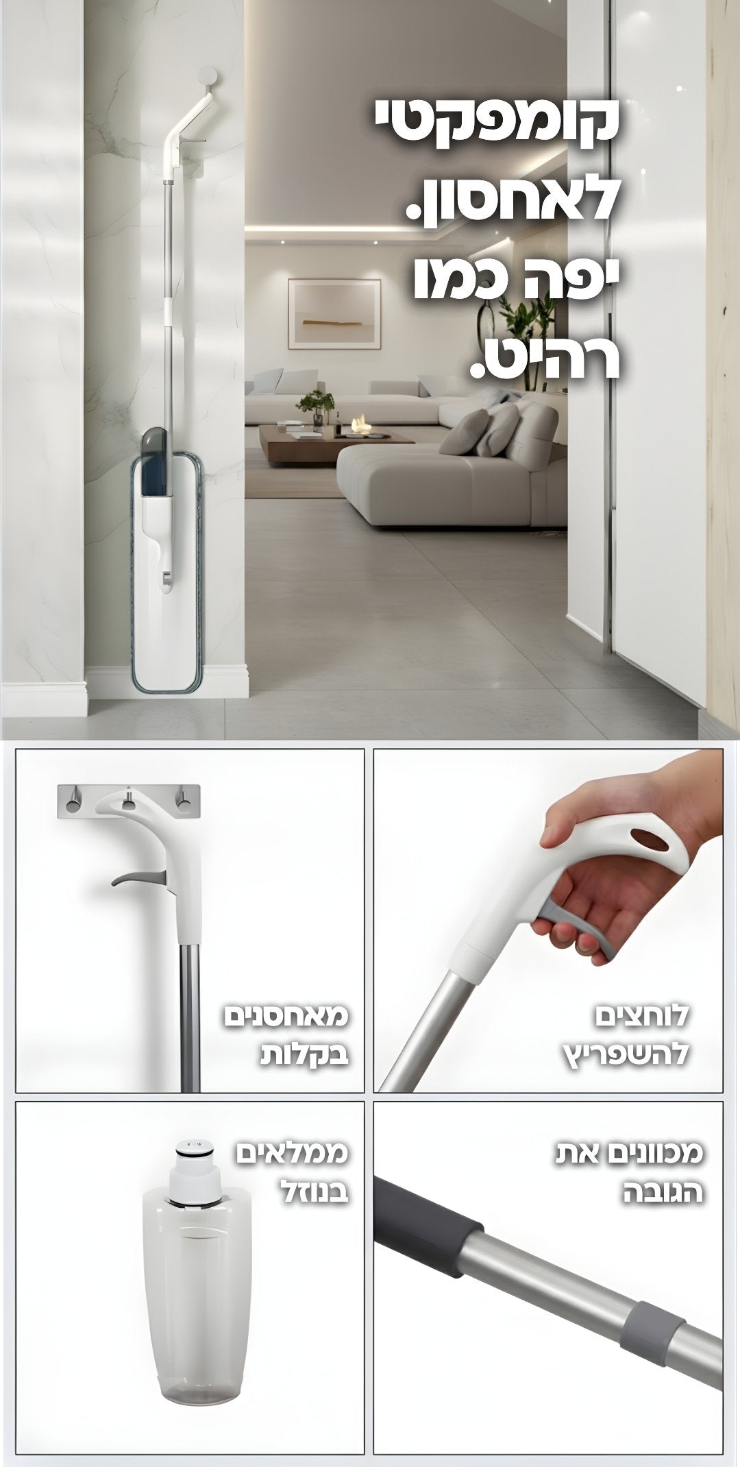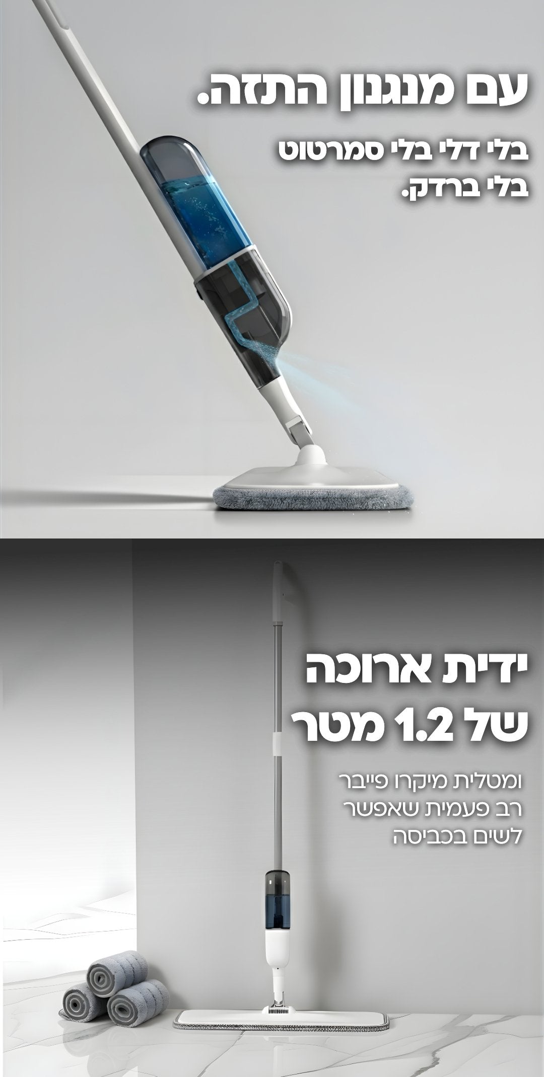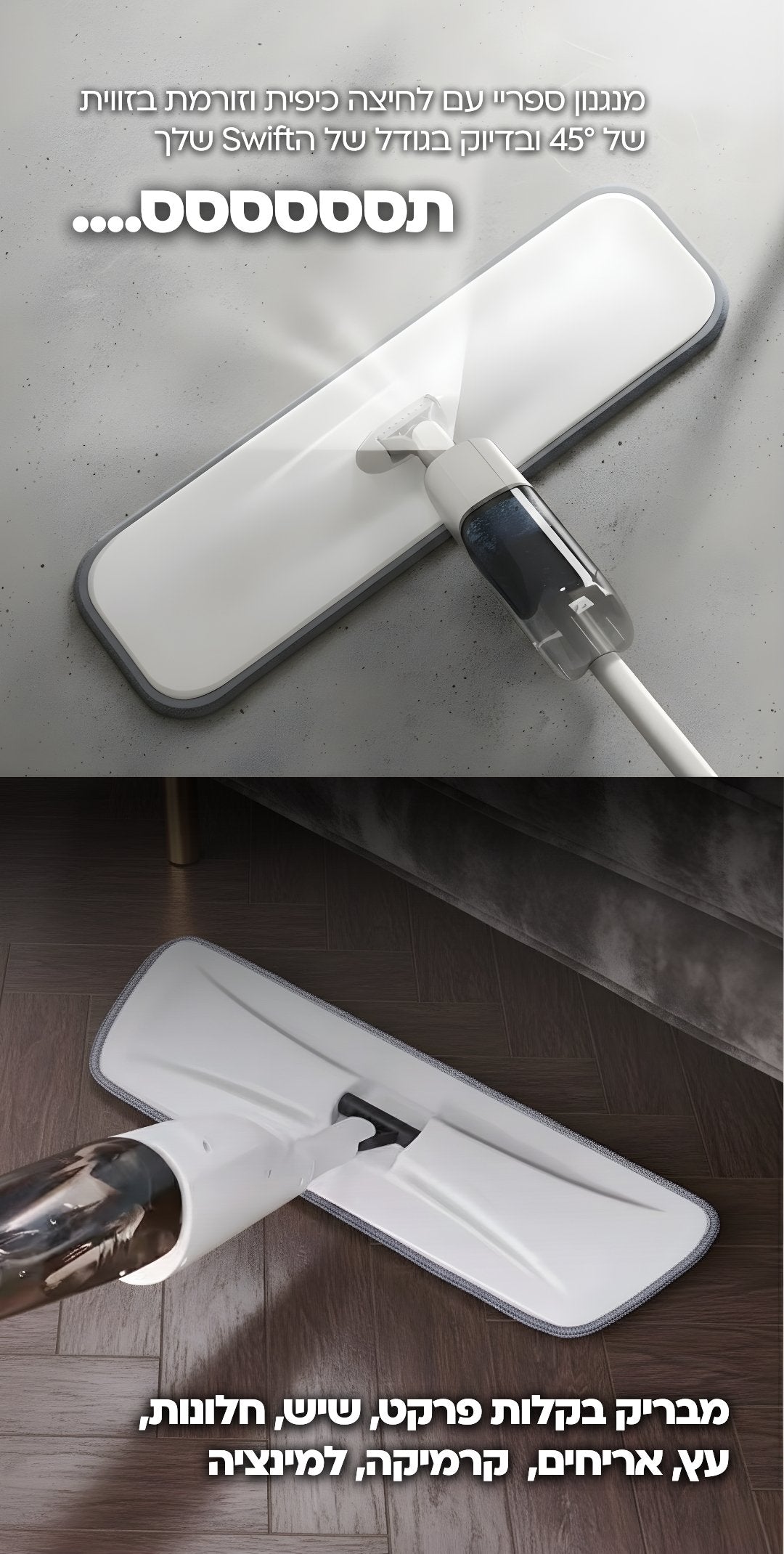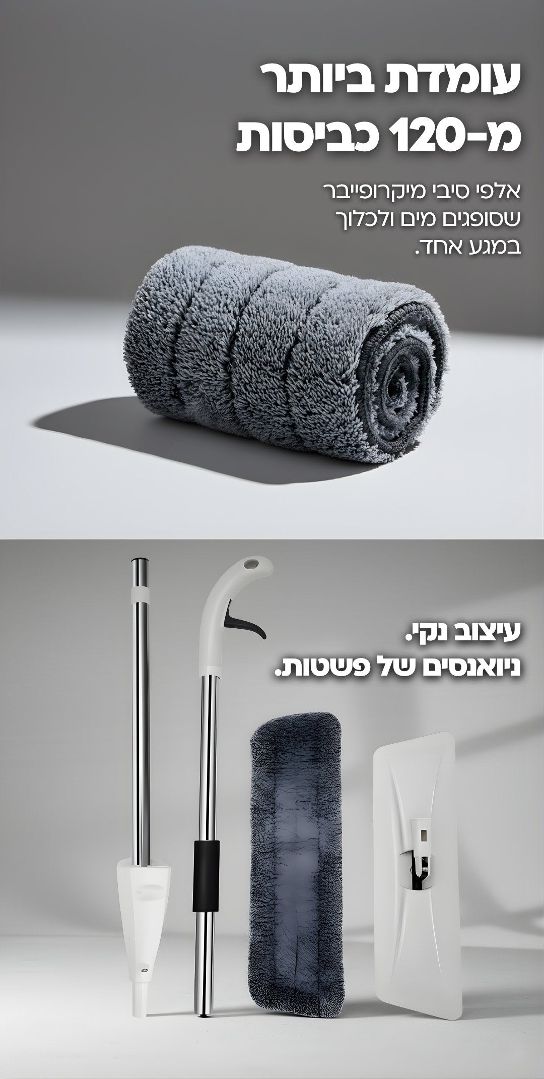 ומטלית מיקרופייבר כדי שתוכלי לנקות כל פינה בלי דלי, בלי סחיטה, ובלי מאמץ.