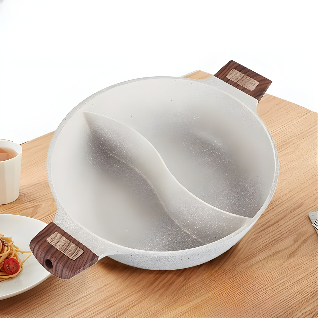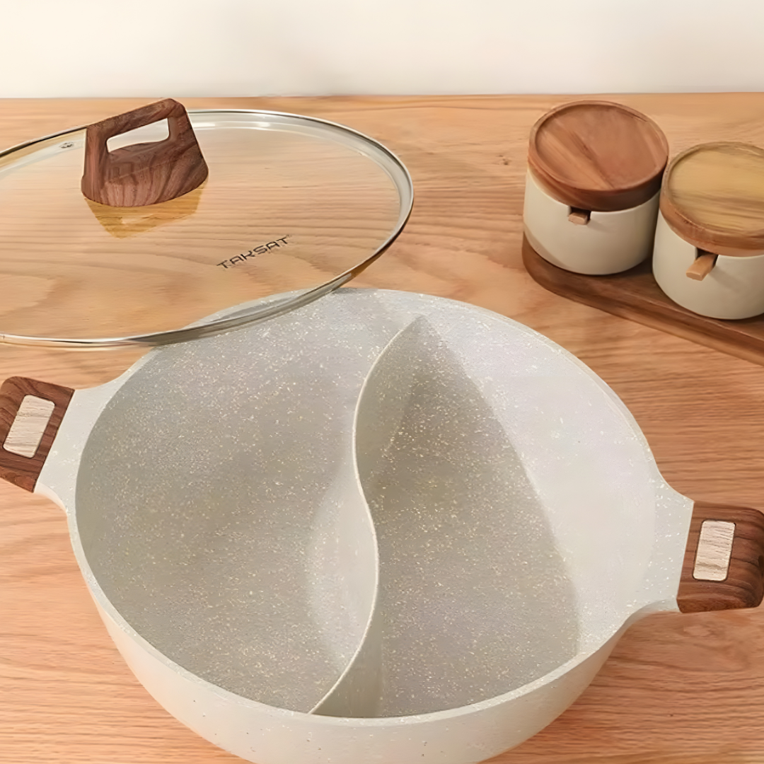 העיצוב המחולק של הסיר מאפשר לך להכין שתי מנות שונות בבת אחת