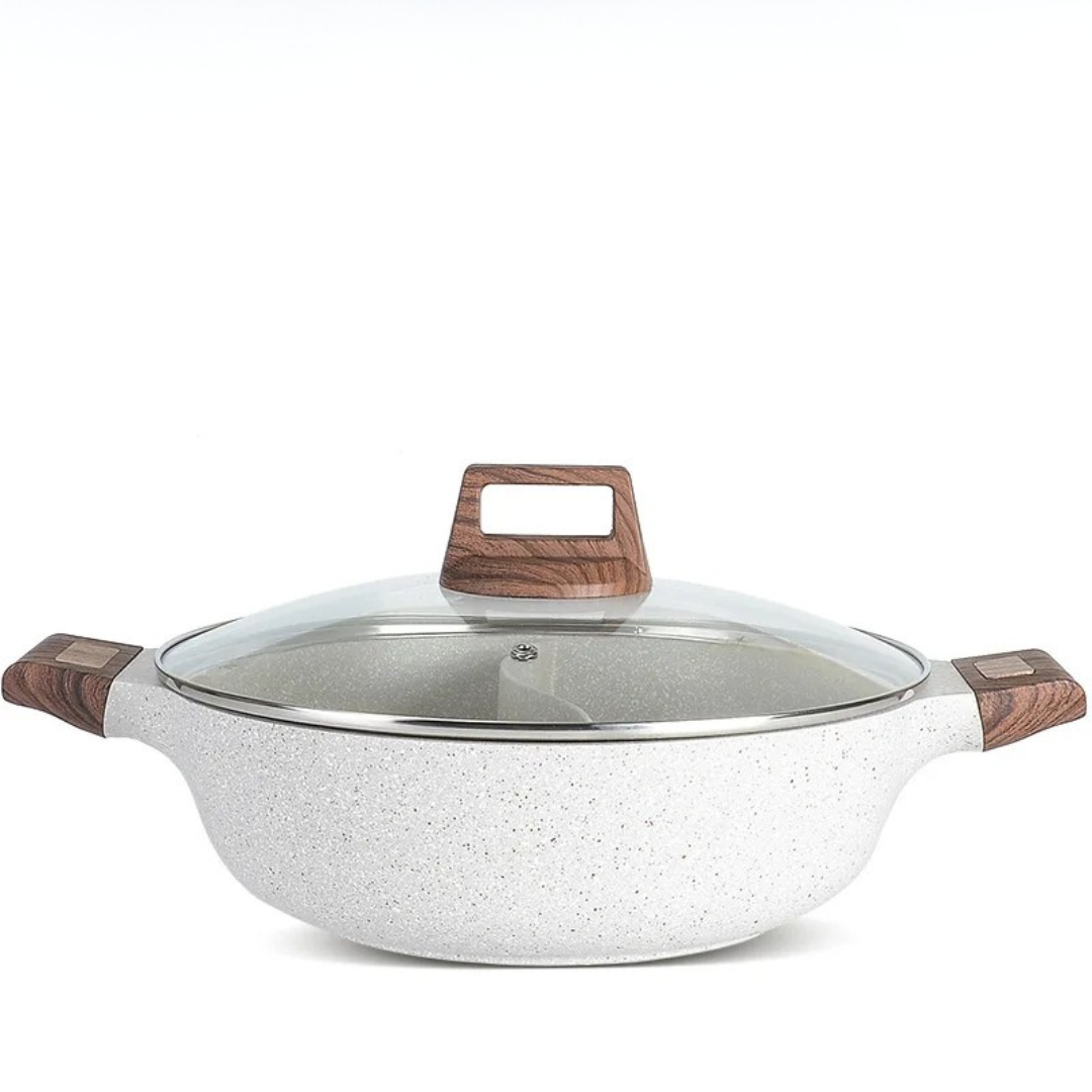 הסיר הוא 28 ס"מ קוטר עם קיבולת של 5 ליטר. זה מספיק ל-3 עד 8 סועדים, תלוי מה מכינים. אידיאלי למשפחה ממוצעת או לאירוח. ובגלל שהוא מחולק לשניים, אפשר להכין שתי מנות בו-זמנית.